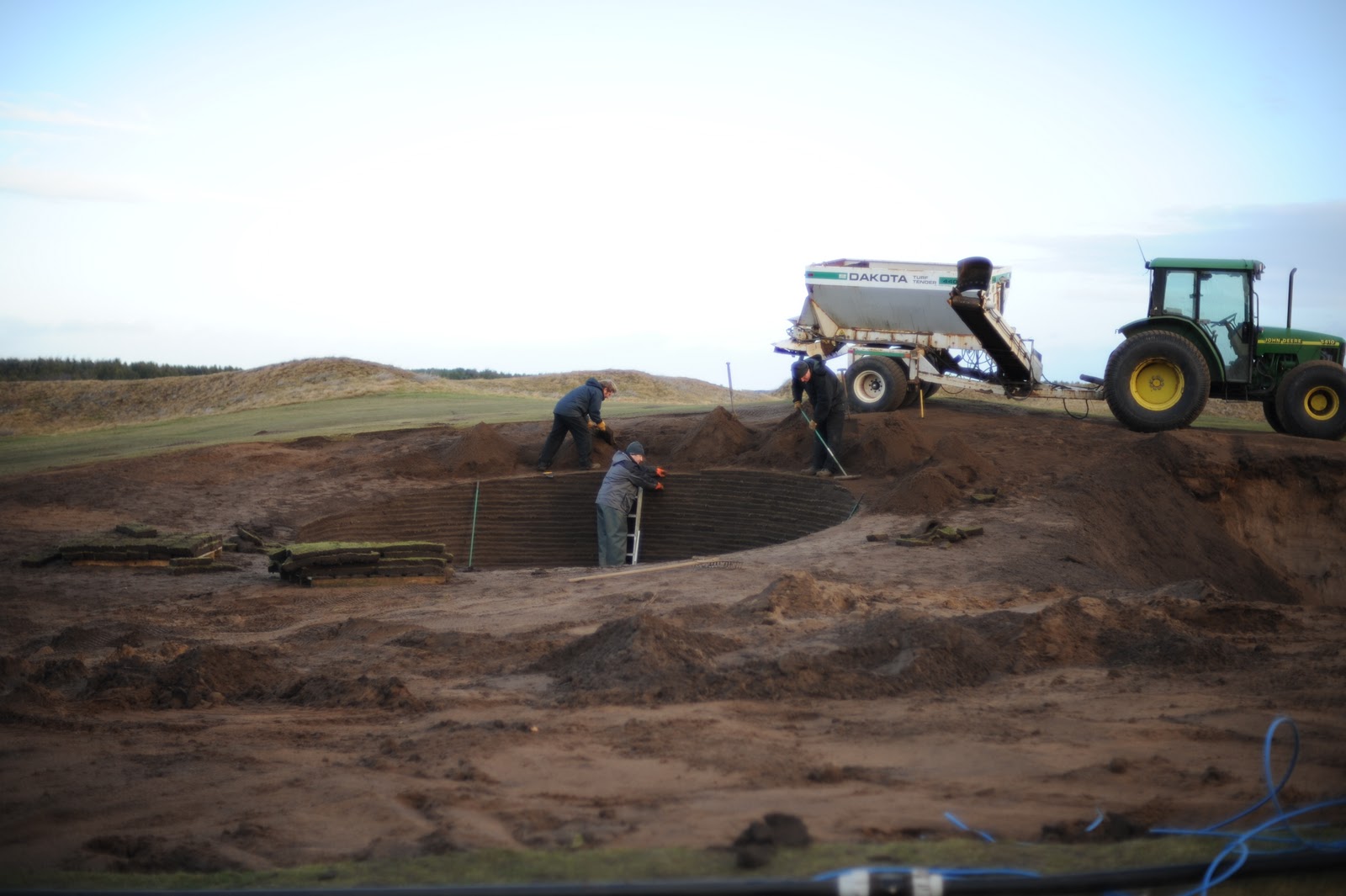 Once again the greens crew at Dunonald Links are hard at work reconstructing the 9th fairway bunker, making it more of a challenge for your return visit to Dundonald.